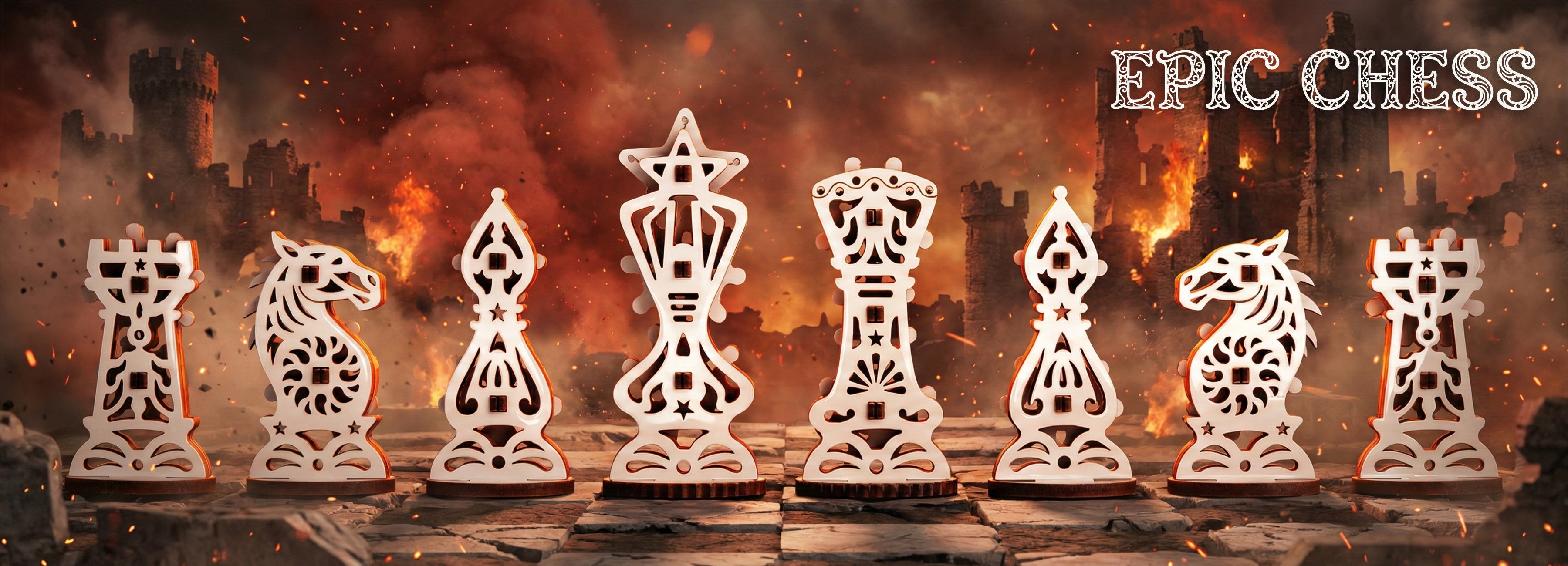 Funvention EPIC CHESS | DIY Mechanical Chess Set with Geared Fidget Pieces | 6+ Years