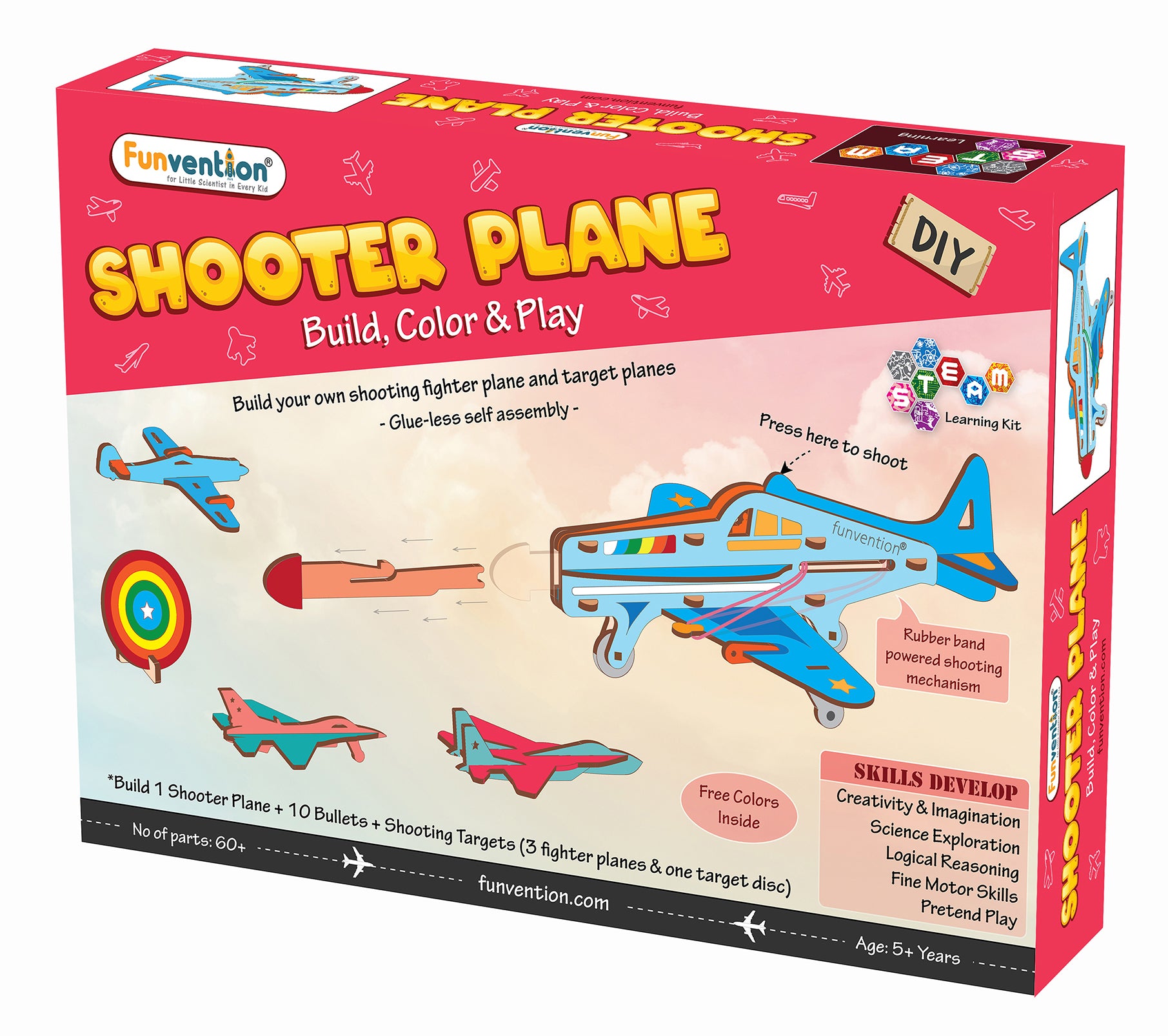 Funvention DIY Shooter Plane Toy for Kids 6+ Years | Build, Color & Play STEM Toy Kit